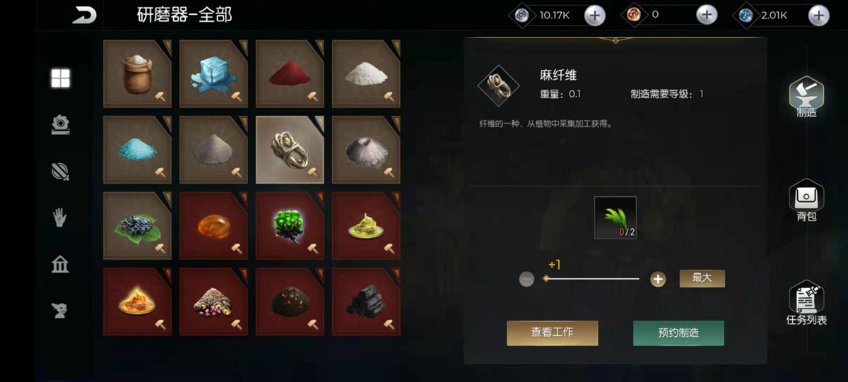 第三种方式是用研磨器进行合成,2个嫩叶可以合成1个麻纤维,玩家有大量嫩叶可以直接在研磨器合成,省去等待嫩叶的过期时间。