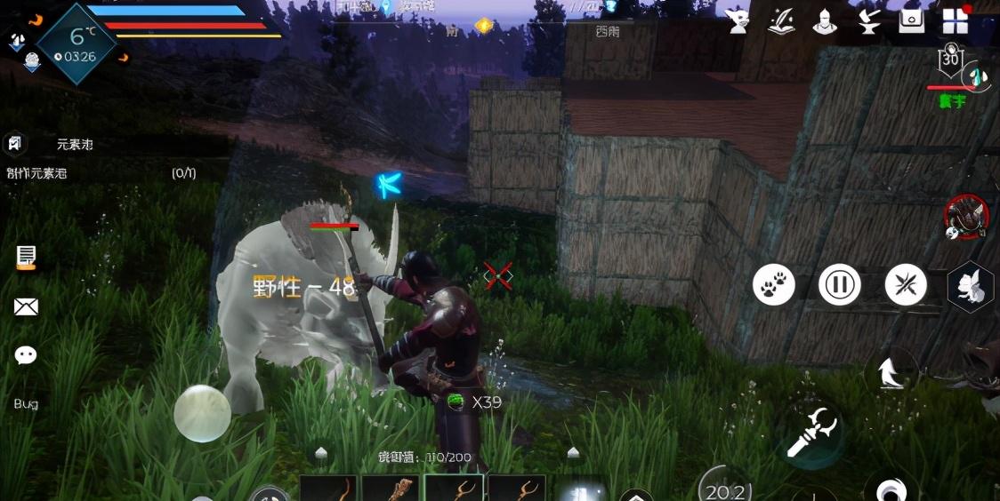 然后装备上捕兽猎叉出门找野猪,对野猪进行攻击,降低野性值。