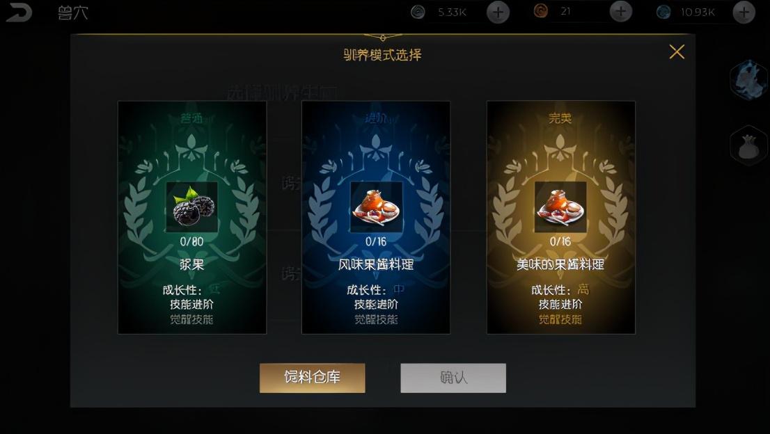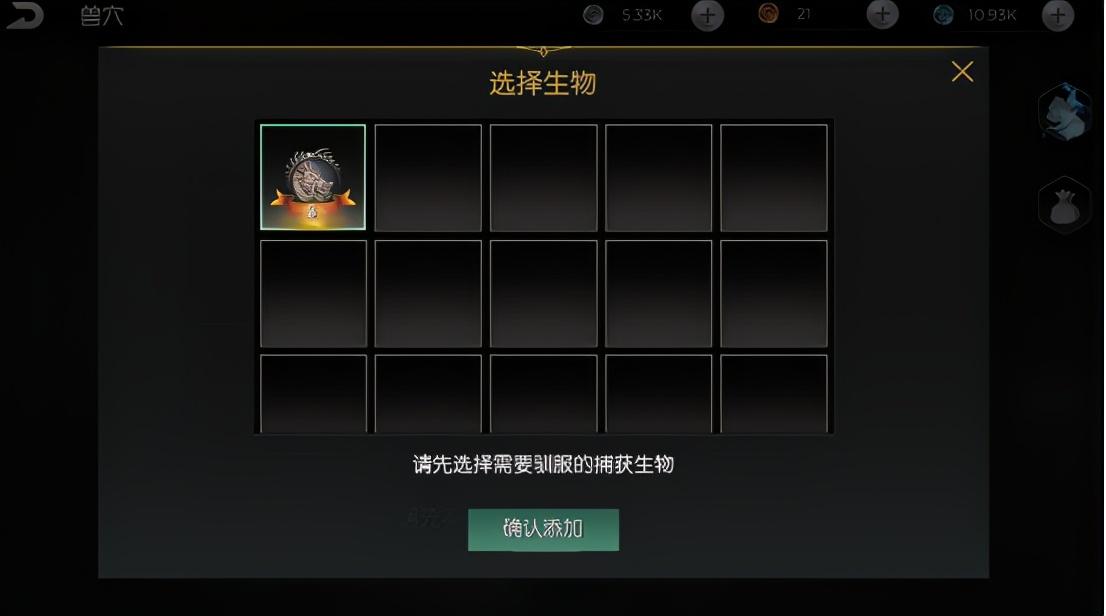 之后在兽穴里选择驯养生物,点击野猪的禁锢石,花费80个浆果就可以驯养了。