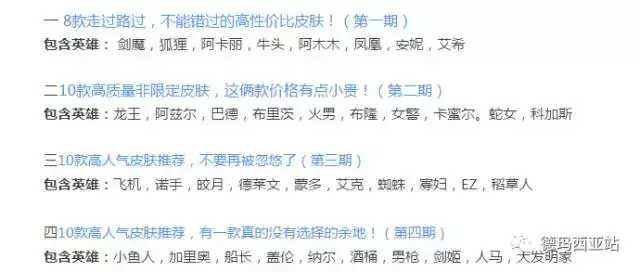 站长已经把T1,T2,T3已经做好的的四期帖子,全部都在活动大全里的非限定皮肤推荐帖子里。以后每次更新,站长都会统计在这个帖子里。当出现阿卡丽商店的时候,撸友们也好有个依据。