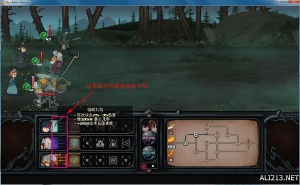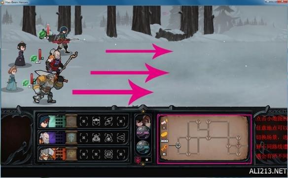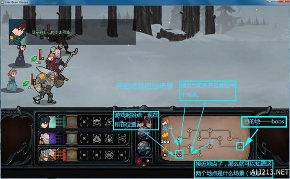 地图是使游戏进行的重要一环(玩家需要通过右下角地图来移动英雄的所在位置),最终地点是BOOS。当游戏开始时或进入下一章时,游戏起始点不变。