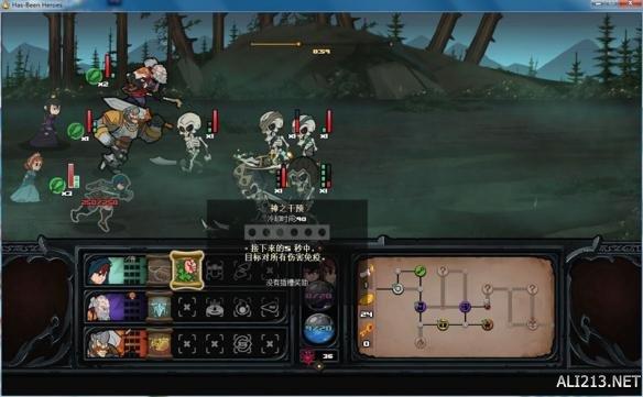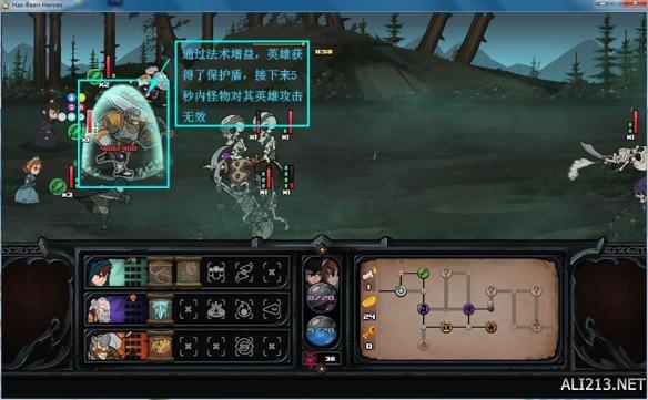 技能条显示灰色(表示免疫效果无效),无效情况下怪物对英雄发起攻击时会消耗英雄的血量,