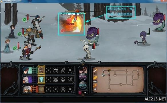 使用技能:点击技能卡-再点击要释放技能的怪物或英雄即可。技能有一定的冷却时间。