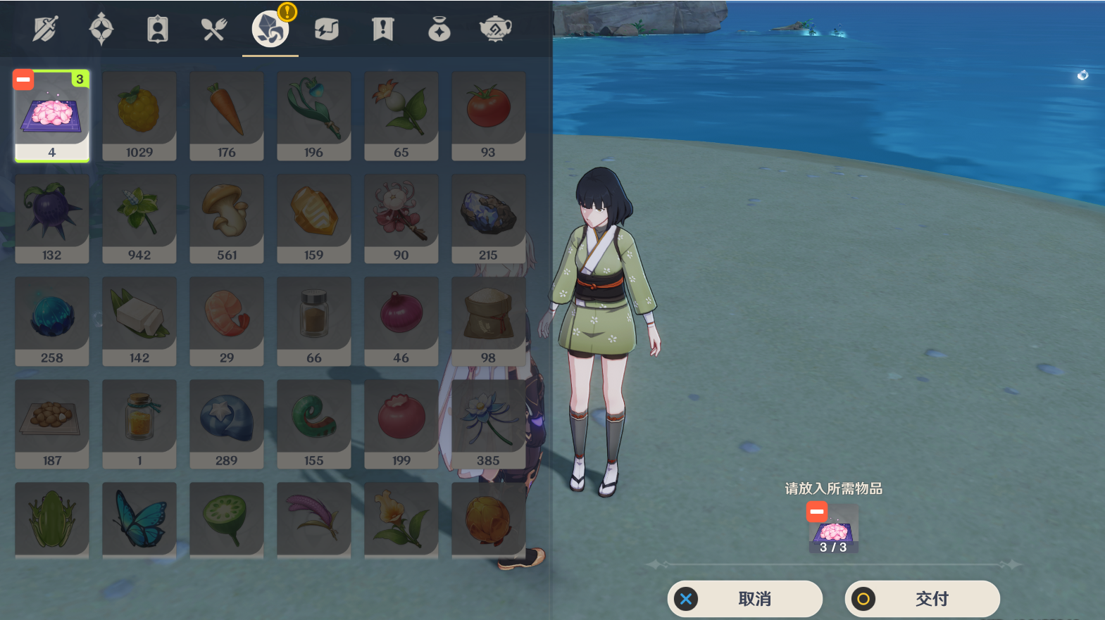 (1)与久美对话,将三份绯樱绣球交给久美,