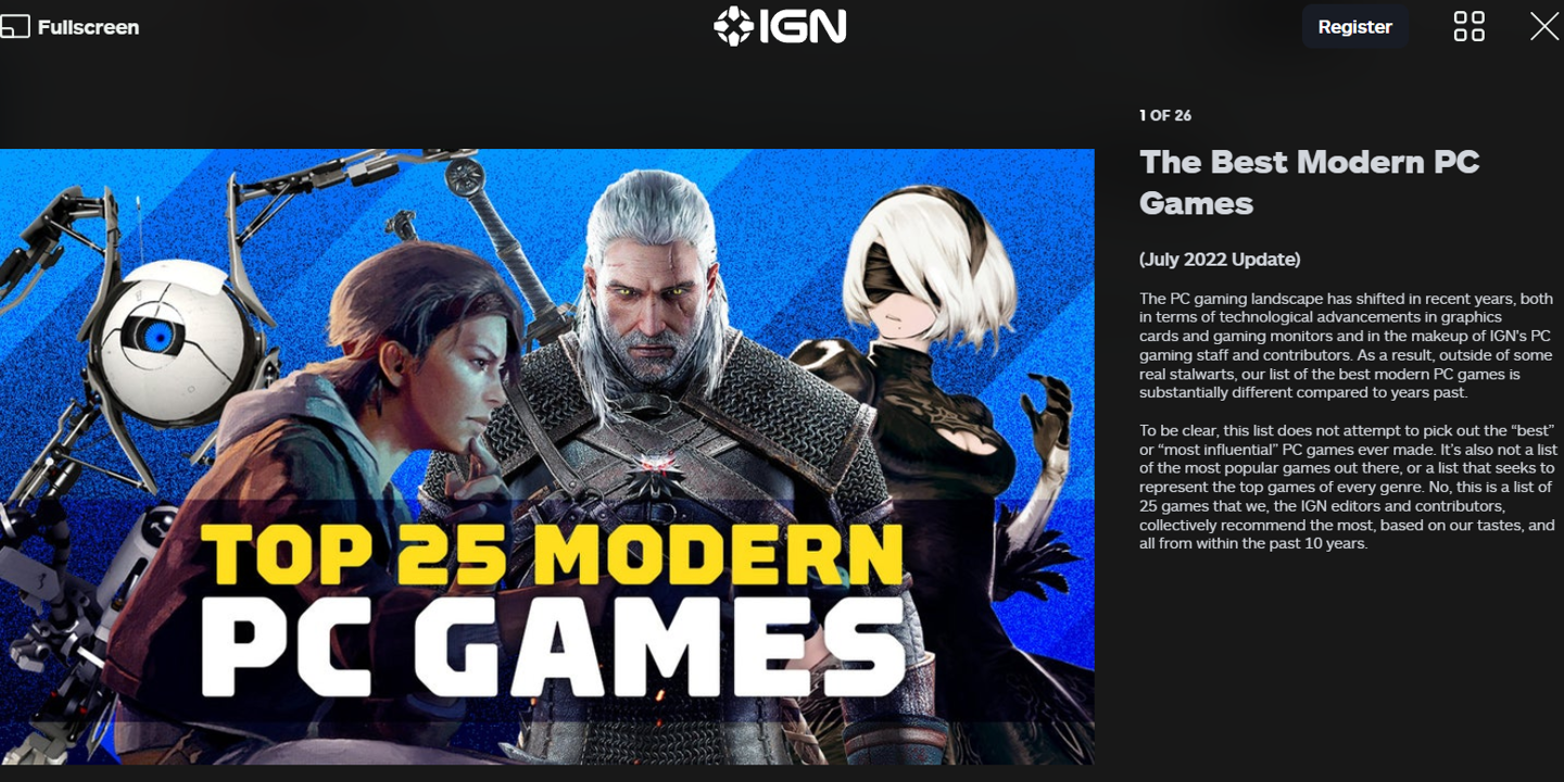 IT之家 7 月 10 日消息,IGN 在内部评选了近 10 年 25 大最佳 PC 游戏,并编撰出了一份推荐列表,于 7 月 7 日发布了最新版本,我们一起来看看。