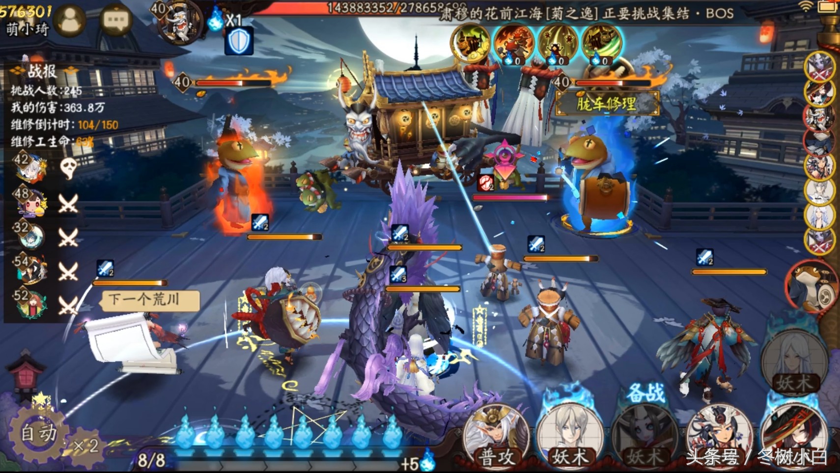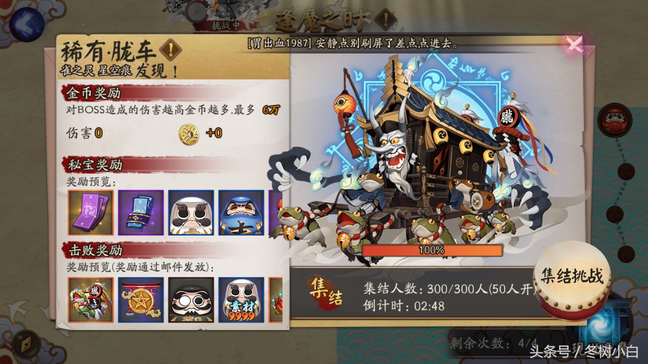 本期的话继续接上次胧车输出阵容的话题,继续为大家推荐胧车的高分阵容。这次的阵容推荐的话,分析的阵容配置原理主要的目的是为了让大家能根据自己的式神来合理配置,而不是只通过别人推荐的阵容来选择。这个阵容思路适用于整个逢魔之时副本,不仅是蜘蛛胧车,以后出的荒骷髅也是可以沿用的。(当然不排除有特殊机制)