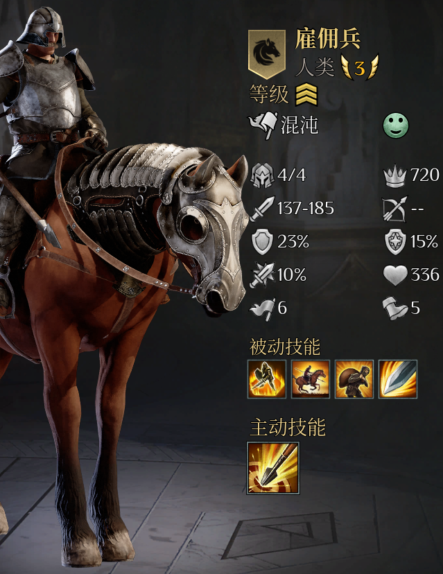 《国王的恩赐2》中的雇佣兵骑手是游戏里非常不错的一种混乱阵营兵种,但是很多玩家都不太清楚雇佣兵骑手兵种到底有什么特点,其实雇佣兵骑手兵种的特点就是输出和血量都很不错,不输秩序骑士,需要的领导力很低,更多如下。