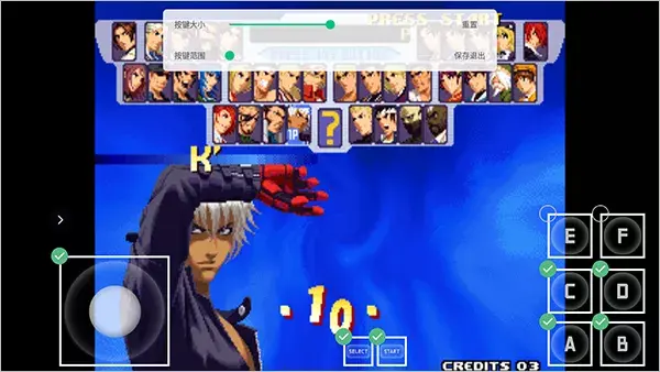 游戏控制方面,采用虚拟按键方式,如果你有手柄、摇杆等设备,也是支持的。