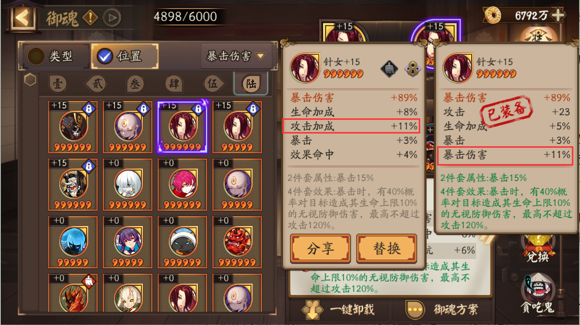 比如在爆伤只有250的时候,五号位有两个御魂,一个增加7%的爆伤,一个增加11%攻击,不考虑其他因素,那么7%爆伤收益会比11%攻击更高。