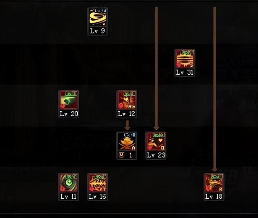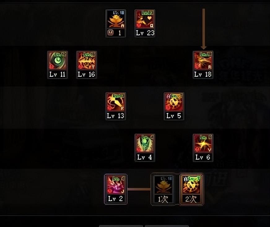 欲望之手:将自身拉到怪物面前,转职被动还能提供一个范围伤害,CD短,如果打造伤害足够清理小怪可以点满,伤害不够清小怪就加一点当位移锁怪技能,用来秒变身非常快。