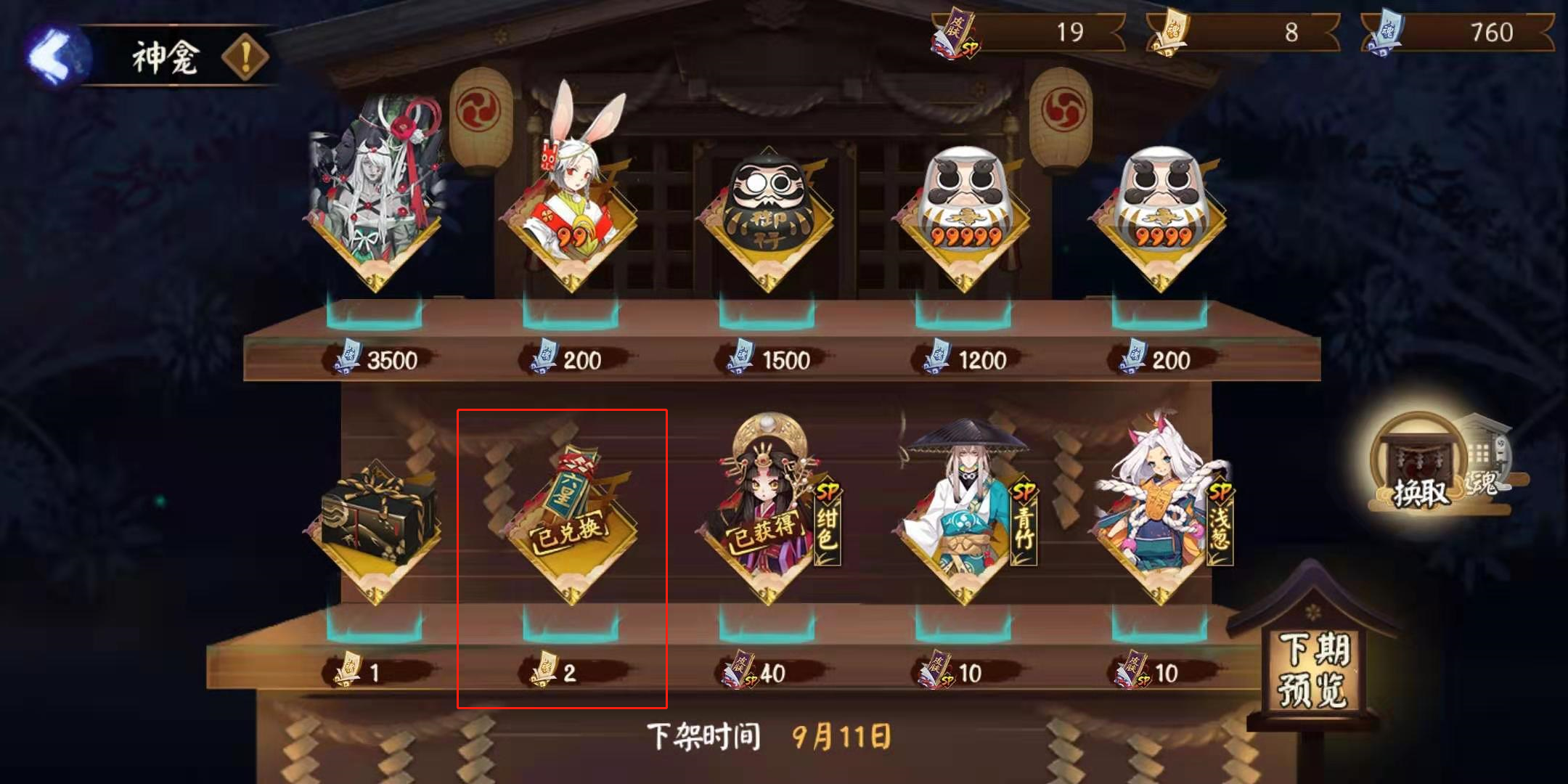 在神龛比较值得兑换的东西,也就是高星白蛋和黑蛋了,其他时候上线的商品真的没有什么用,这次好不容易有一个顶级道具,一定要抓住机会。