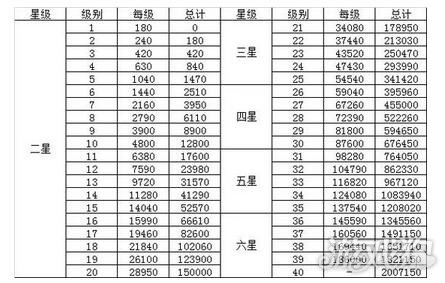 每级升级所需的经验是三次方递增的,总经验所需则为四次方级。因此前期升级需要的经验不是很多,但到后期增长却是相当恐怖的。