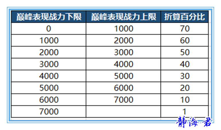 简单地说就是在继承的时候会将你之前的巅峰表现战力分分为好几个区段,每个区段的继承比例会有不同。