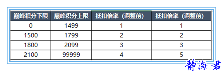 可以看到,抵扣比例的变化主要针对的是2100分以上,这个和我们的关系不是很大~
