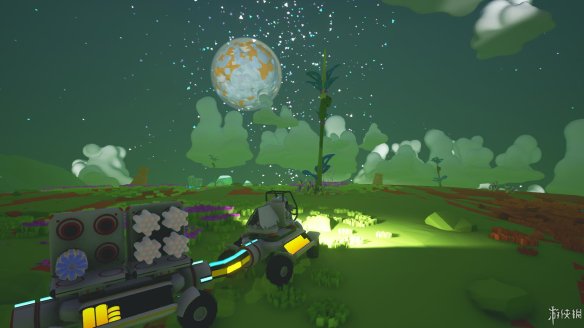 因此首先就需要尽快在基地中建设好[载具舱]。前期收集不到铝,建不出重型货车,就先用化合物制造出漫游车来。此外,不要忘了漫游车需要一个单人座和一个能源提供。早期可以用太阳能提供能源。在车辆完全没电时,将其后端与基地连接,可以进行充电。