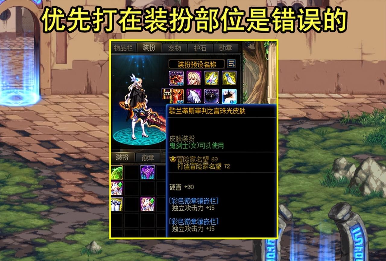 灿烂徽章是这3类奖励中,价值最小的道具,但其实在使用上,也是有技巧的。一般玩家会把它用在没有25力智的装备上,例如光环、皮肤、梦幻克隆武器这装扮上,但其实打在这3个装扮部位上是错误的做法。