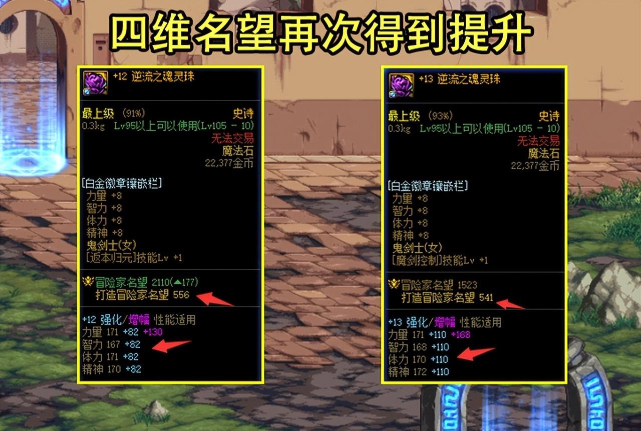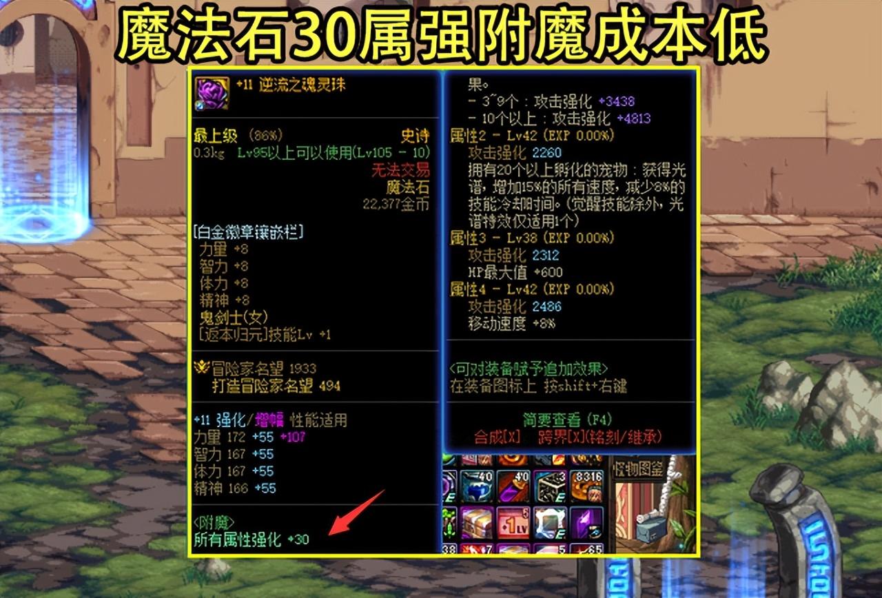 为什么是右槽呢?因为右槽相对左槽成本更低,12属强宝珠需要1套年套,30属强宝珠3牛竞拍最多也就1000W左右,如果大号想攒胚子,冲击12~13魔法石,可以把白金徽章给到大号,这么一来名望和四维的都能得到大幅度的提升。