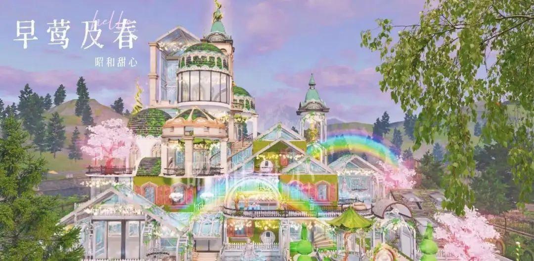 漫游仙境:由秋日森林娜娜 带来的作品更是让人惊艳,主体建筑呈现出一棵茁壮成长的幼苗昂扬向上,迎风伫立,一簇簇清新的小花藏在叶片之间,春意盎然的景象令人驻足。更加绝妙的是庄园中打造的浪漫庭院,荷塘春水在林木间流淌,各种花卉草木争奇斗艳,置身其中仿佛变身花仙子,流连于鲜花美景之中便是人间最美的四月天!