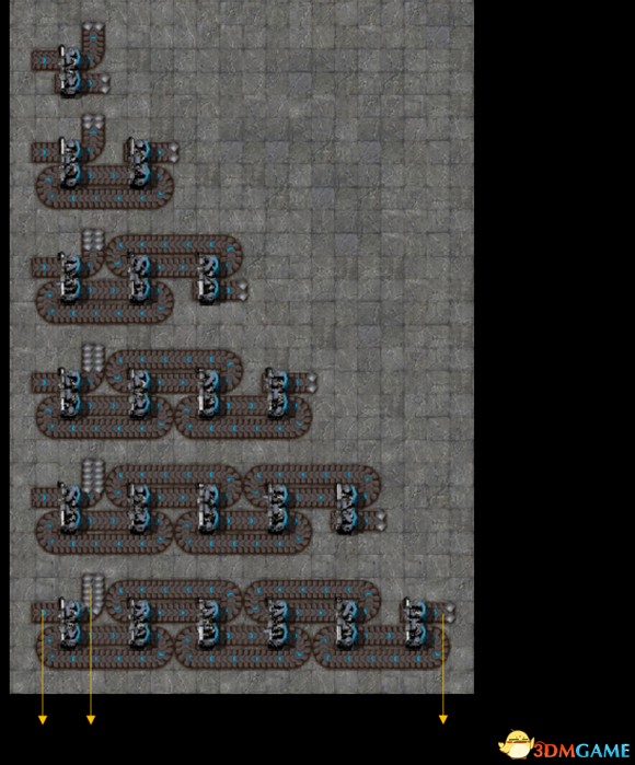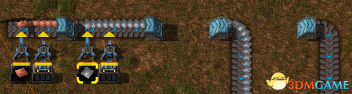 (3)多数情况下给传送带装货,传送带是不能达到最大传送能力的(爪子放东西会有一定的间隔,导致效率不能达到满载,此间隔不是说爪子两次抓取放下的间隔,而是爪子放物品会有一个很微小的空隙,见图)