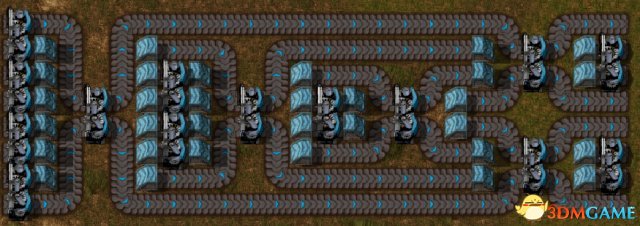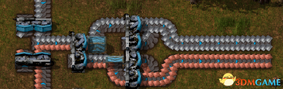 最常用的物料合并就是T型结构了,但是T型结构会造成传送带通常会造成一侧物料利用率低下,可能会影响到上级环节,优点是占地小