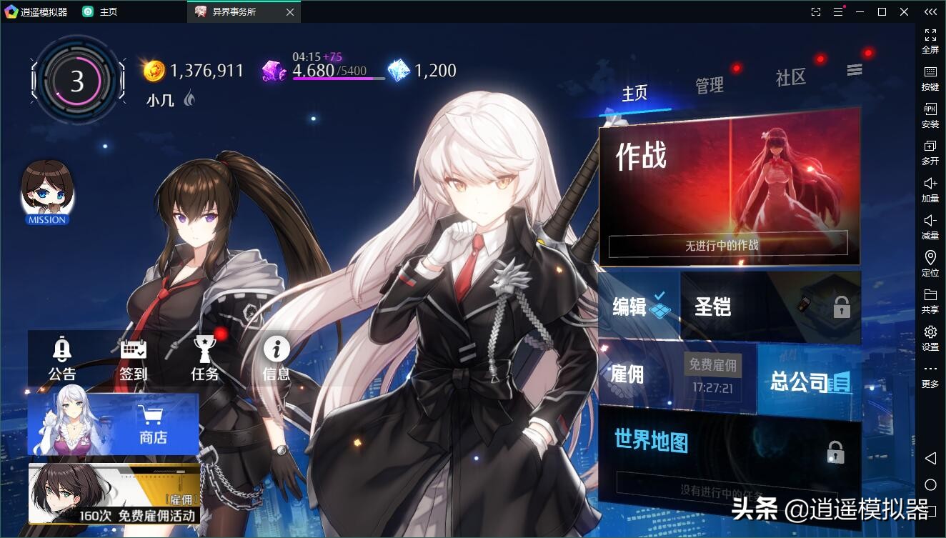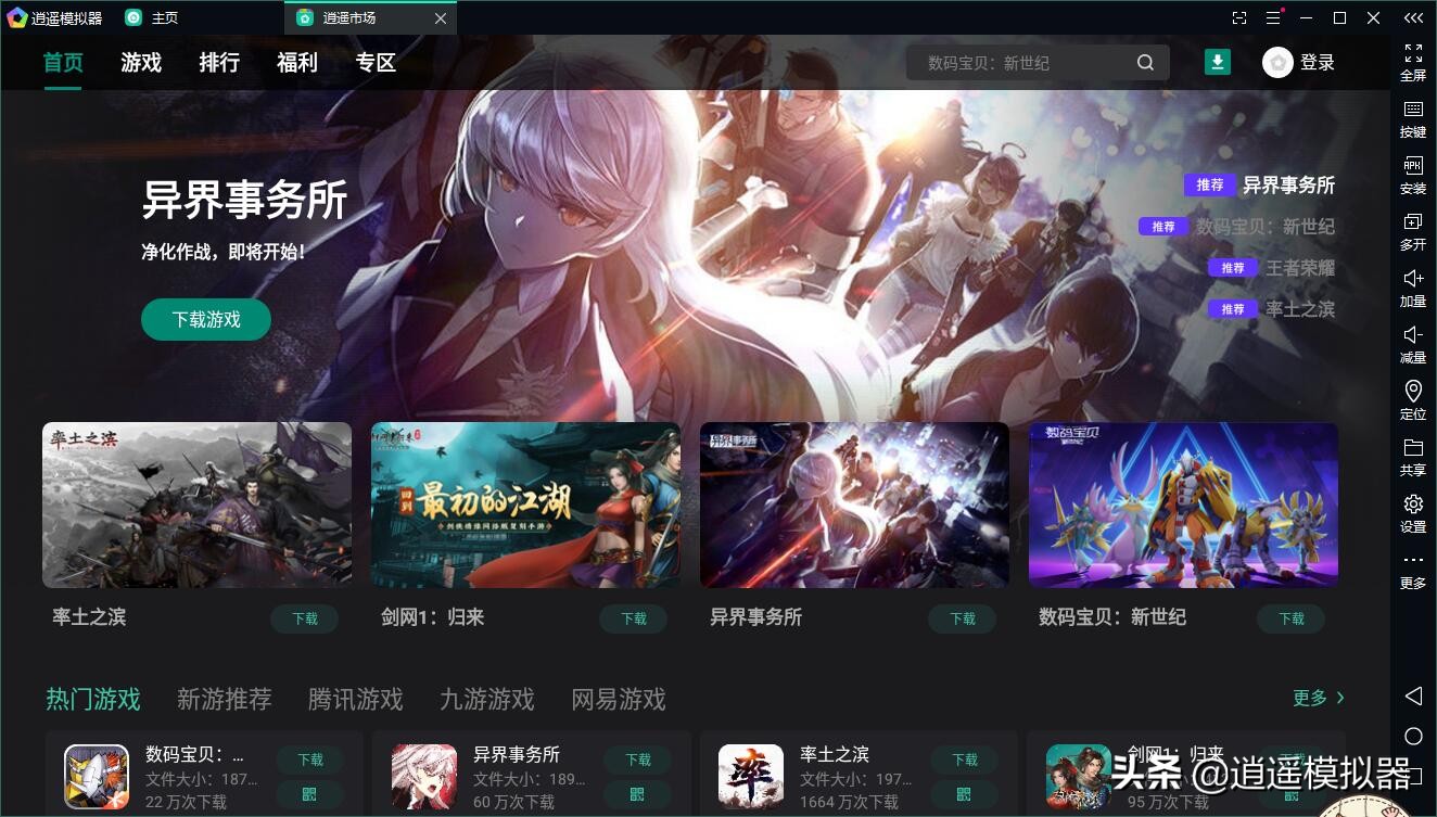 现在可以直接在电脑上玩异界事务所电脑版,账号和手机是互通的。只需要使用逍遥模拟器即可,流畅无卡顿,很适合玩异界事务所这种卡牌策略游戏。