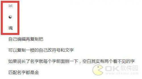 直接去复制人家在网上取好的格式名称,到时候进游戏当中,把他的名字改掉即可。竖立名字的格式没有变,这样就可以调换出自己喜欢的名称,比如说下面这张图就说得很清楚,直接去复制就可以了,就能取出心中想要的名字,还是非常简单的。