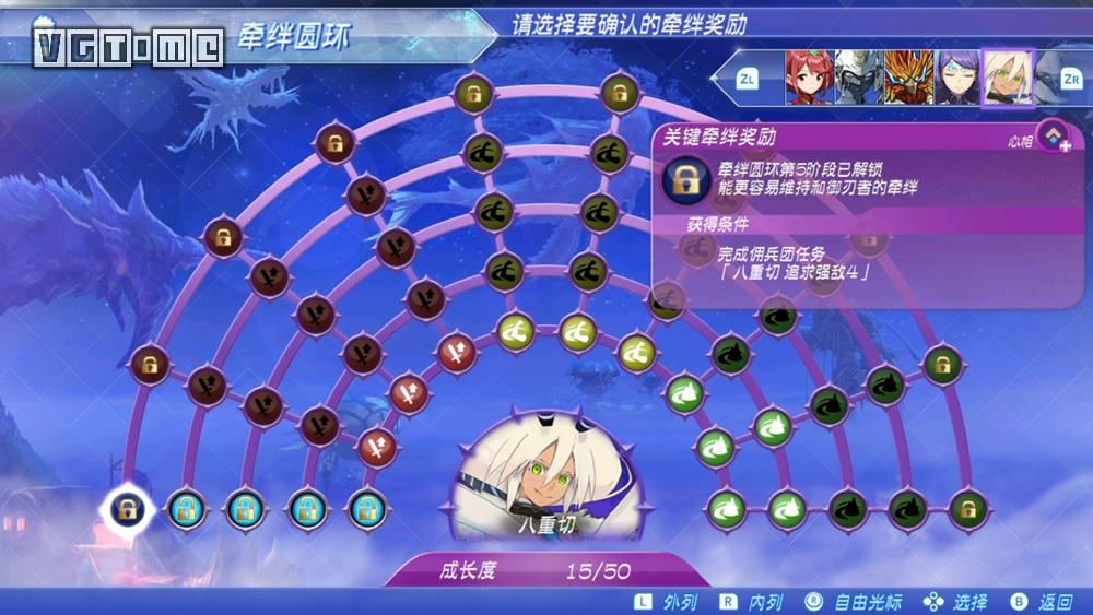 八重切只能通过完成特定的佣兵团任务才能提升信任度,解锁牵绊圆环。
