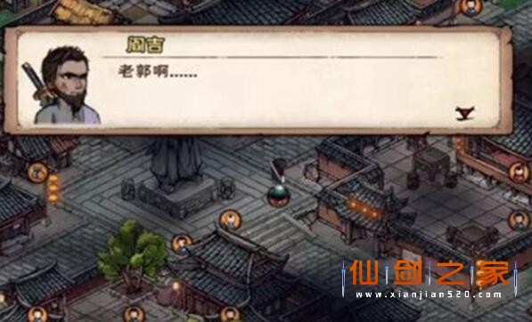 3、再次到雕像前(20,13)触发任务,阎吉跪在雕像前认罪,一番对话后找江小鹏(20,12),小二(17,10),公孙仪(18,8)打听,回去找(20,13)阎吉,触发一大堆对话后,阎吉吃盒饭下场,对话中提及薛龙城。