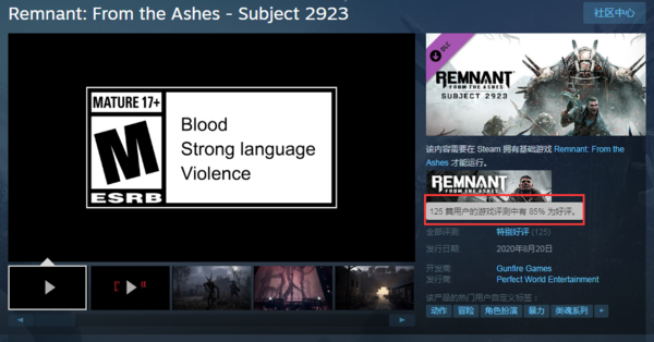 昨日,《遗迹:灰烬重生》新DLC“2923号实验对象”正式登陆Steam。目前DLC有125位玩家给出了评价,好评率为85%。一些玩家表示新DLC比上个沼泽DLC好了不少,但也有很多人因为BUG给出了差评。