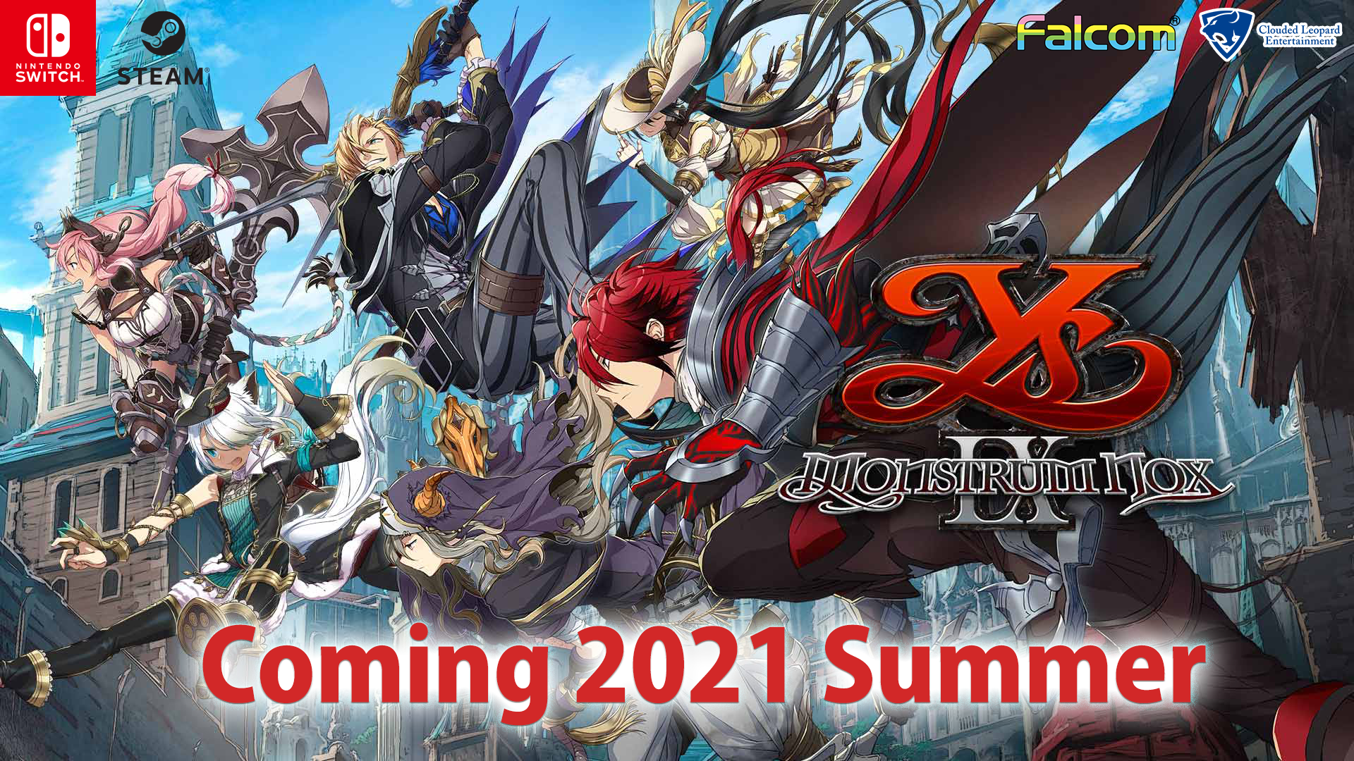 云豹娱乐股份有限公司(董事长兼社长:陈 云云)今日宣布由 NIHON FALCOM CORPORATION(常务董事兼社长:近藤季洋。以下简称『日本 Falcom』)开发的动作 RPG『伊苏 IX -怪人之夜-』,将在2021年夏天于亚洲地区推出 Nintendo Switch版/Steam版。