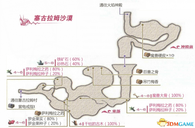 前往夏纳亚村的途中,可获得伊可种子, 露格特种子,夏纳亚之森中有卡米卡种子,大树中的花型怪物有柯摩那种子,也可以采集到,前往沙漠中击倒仙人掌怪物可以得到萨利梅拉种子,洞窟间道外可以采集到罗金种子,风之圣地中,第二个喇叭下蓝色可使人混乱的魔物带有那多利种子,切古尔种子在通往盲女村子的峡谷中可以采集到