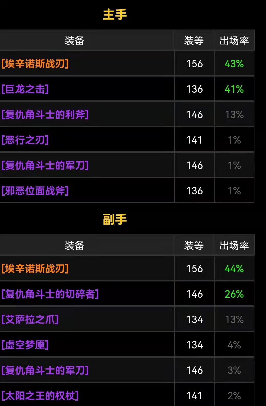 另外主手蛋刀的掉率比副手蛋刀的掉率高21%,这也比较符合目前玩家们实际入手的情况: