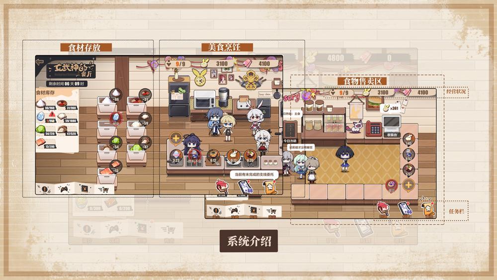 餐厅升级:随着舰长在餐厅里出售菜品的增加,可提升餐厅等级。升级餐厅可解锁新的食材和菜品,同时提高营业店员的数量。