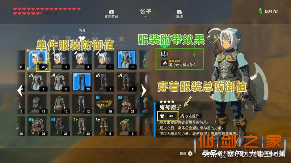 举个例子,拿着108兽神大剑的黄金人马,伤害是108+60=168=42颗心,不穿防具,即便是满心一刀下去林克也就没了;但如果穿着满级古代套装(84点防御),伤害就可降至21颗心,即使失误也有机会嗑料理再战。