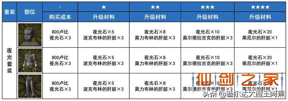 安静性提升,主要用于偷袭怪物;全套升至二级开启隐藏效果:夜间移动速度提升
