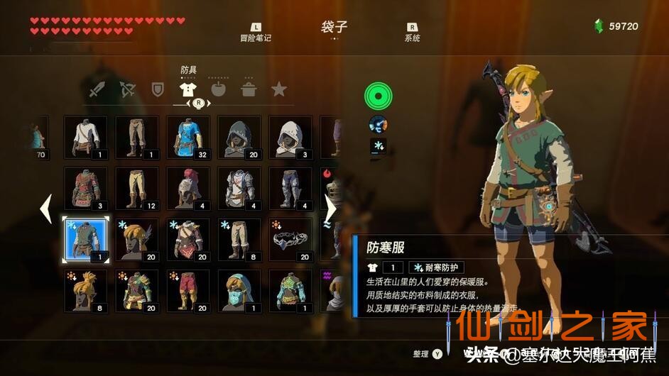 在《塞尔达传说 · 荒野之息》中,林克可以穿着不同的服装奔走于海拉鲁大陆,这些服装有着不同的功能,如防寒、耐火、提升攻击力、防止怪物主动攻击等,《全套装》系列将和大家分享不同套装的属性、获取方式及升级材料。