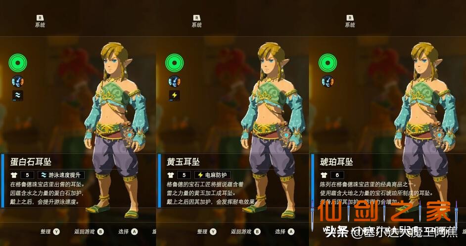 蛋白石耳坠:游泳速度提升;黄玉耳坠:电麻防护;琥珀耳坠:无特殊效果