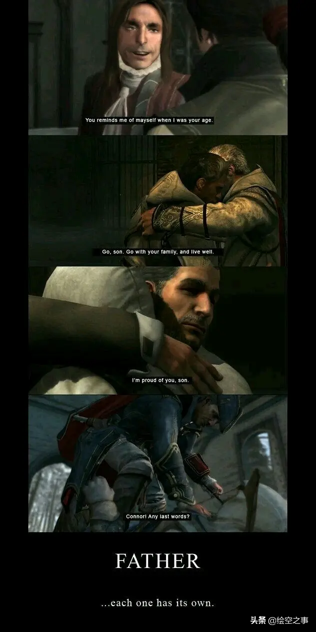 而后海尔森的孩子康纳又被培养成了刺客,并最终杀死了海尔森,这三代人的故事不仅是肯威家的悲剧,也是刺客组织与圣殿骑士两个阵营的悲剧。