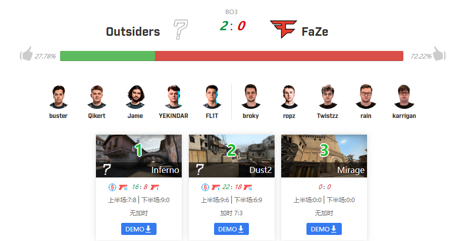 而最后一场BO3,VP2-0拿下FAZE就不算有太大意外了,毕竟昨天这支即将启航的银河战舰刚输给ENCE,所以输给VP属于是非常能接受了,不过就是不知道FAZE老板能不能接受,临时来个替补JKS队伍能拿IEM卡托维兹冠军,换成原班人马了反倒是小组赛就开始挨打,先输ENCE再输VP,要是接下来直接走人的话,我估计JKS可能真有班上了(doge)