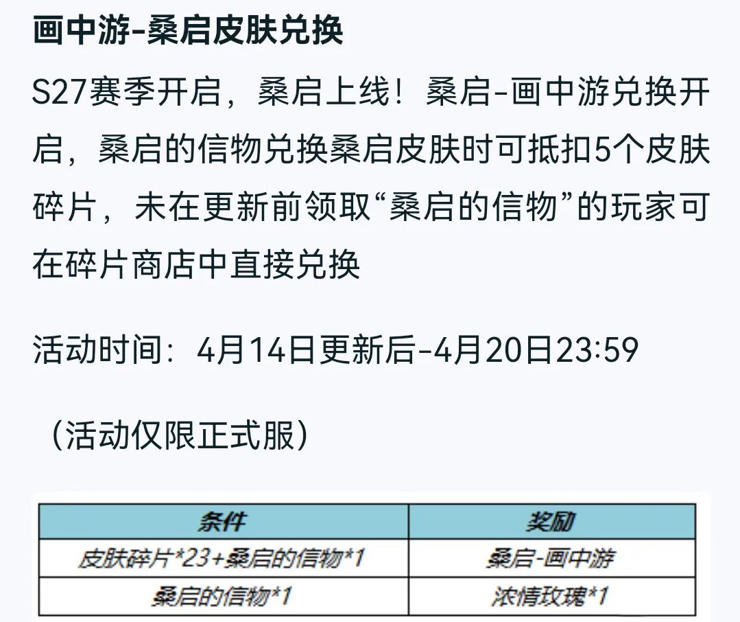 或许王者荣耀也知道,他们推出的新英雄的伴生皮肤有多敷衍,所以从暃开始,新英雄的伴生皮肤,都只需要23个皮肤碎片。这是正式服独有的。但要记住,需要在活动界面去兑换,而不是碎片商店。否则前段时间收集到的桑启的信物就只能拿来兑换浓情玫瑰了。这或许是以后新英雄伴生皮肤的常态了。因为皮肤做得太敷衍,只能降低兑换要求。