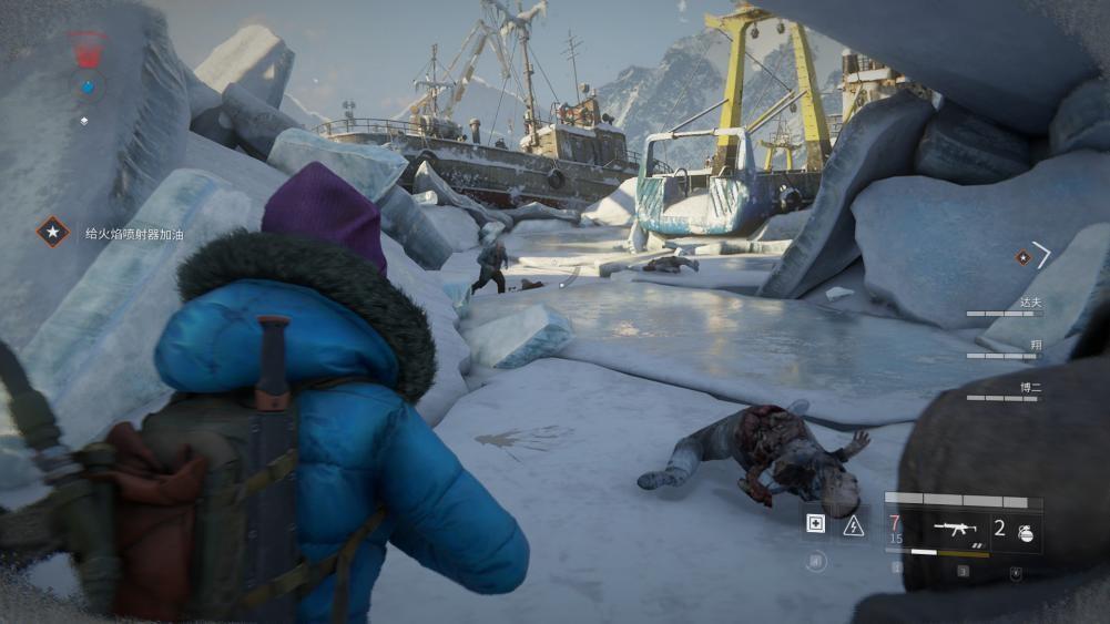 首先要提到的,便是在WWZ中就被玩家诟病的AI队友,这一点在WWZA也仍然没有改进。在单人游玩的情况下,三个AI队友所做的一切,便是跟在你身边清理僵尸,或者是在队友倒地时提供帮助。无论是任务道具的运送,还是医疗包等物资的携带,都需要你自己来完成,而且由于医疗包只能携带一个,会导致你经常在补给点出现所谓的“浪费”。