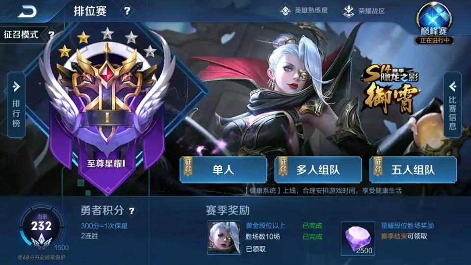 还有一些人花费的时间要更长些,这些多半是单排玩家,由于天美匹配机制的原因。从星耀一1颗星,到王者段位,虽然只需要再积累5场净胜局,但实在是难,真的难,跟你自己的表现已经没有多大关系了。有可能打到3颗星,再一波连跪掉到没星,然后胜负胜负恶性循环,严重的甚至还要掉段到星耀二,说多了都是眼泪。遇到演员、挂机等,也只能自己吞这苦果。