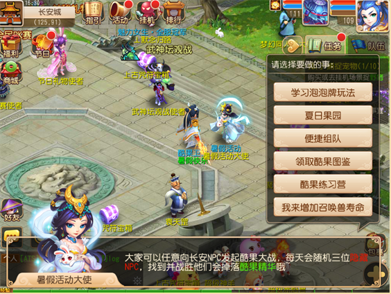 这个夏天,酷果牌风靡长安城。活动期间每周一至周五,玩家可以与长安城任意NPC进行对话即可开始对战,而每日前三次战胜NPC可获得经验奖励,同时长安城每日有随机三位隐藏奖励NPC,找到并战胜他们可额外获得酷果精华!灵活运用你的手牌,展现你的策略智慧,战胜他们吧!
