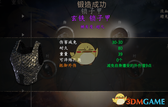 玄铁锁子甲:2玄铁加2镔铁打造。(需要锁子甲蓝图,大研镇铁匠寒铁换)