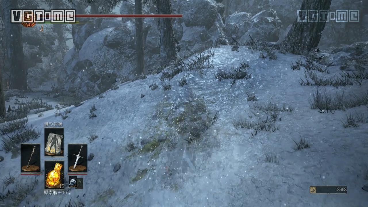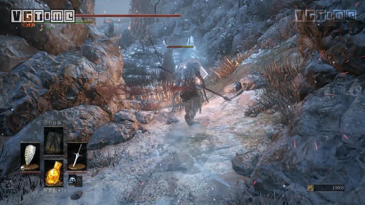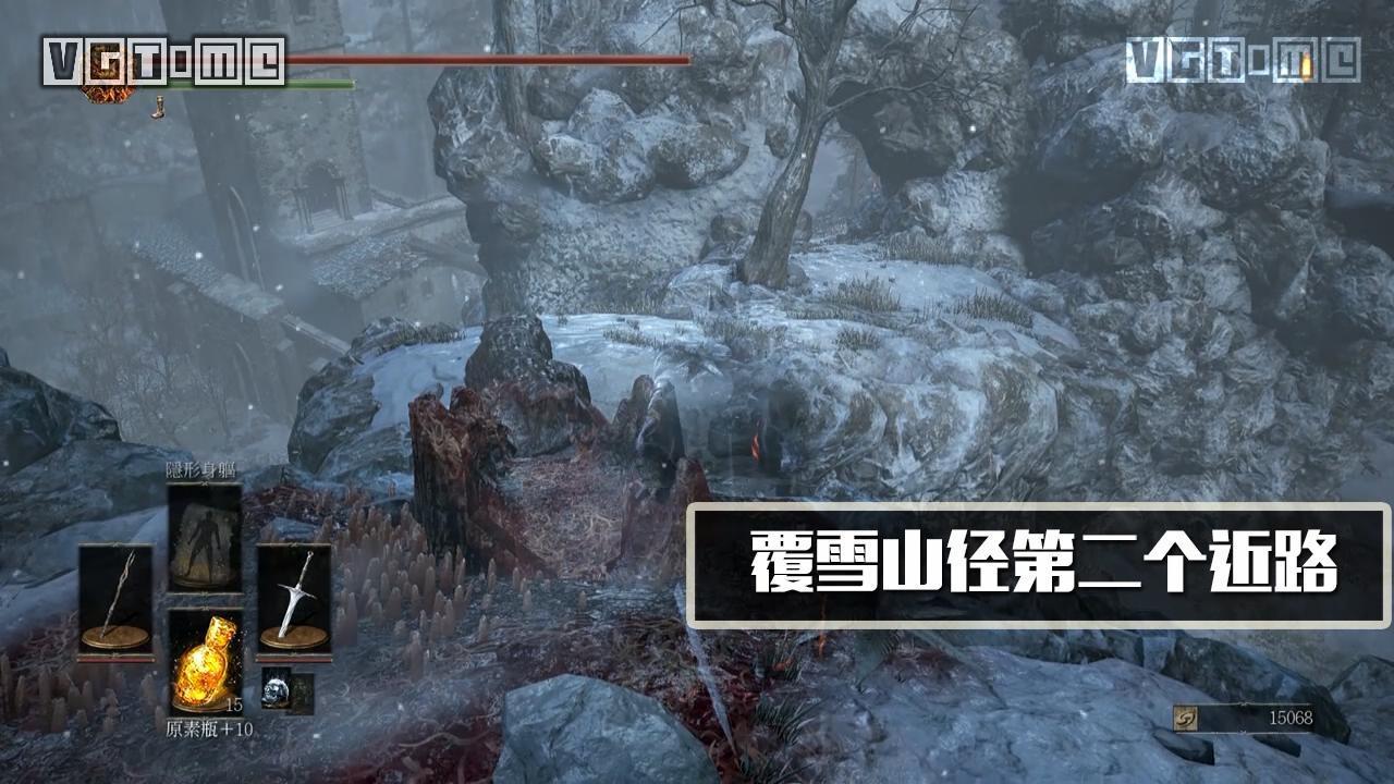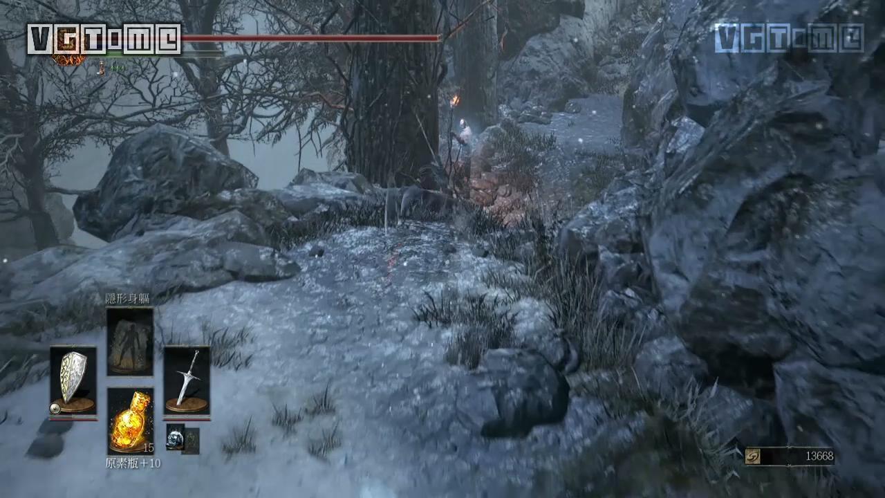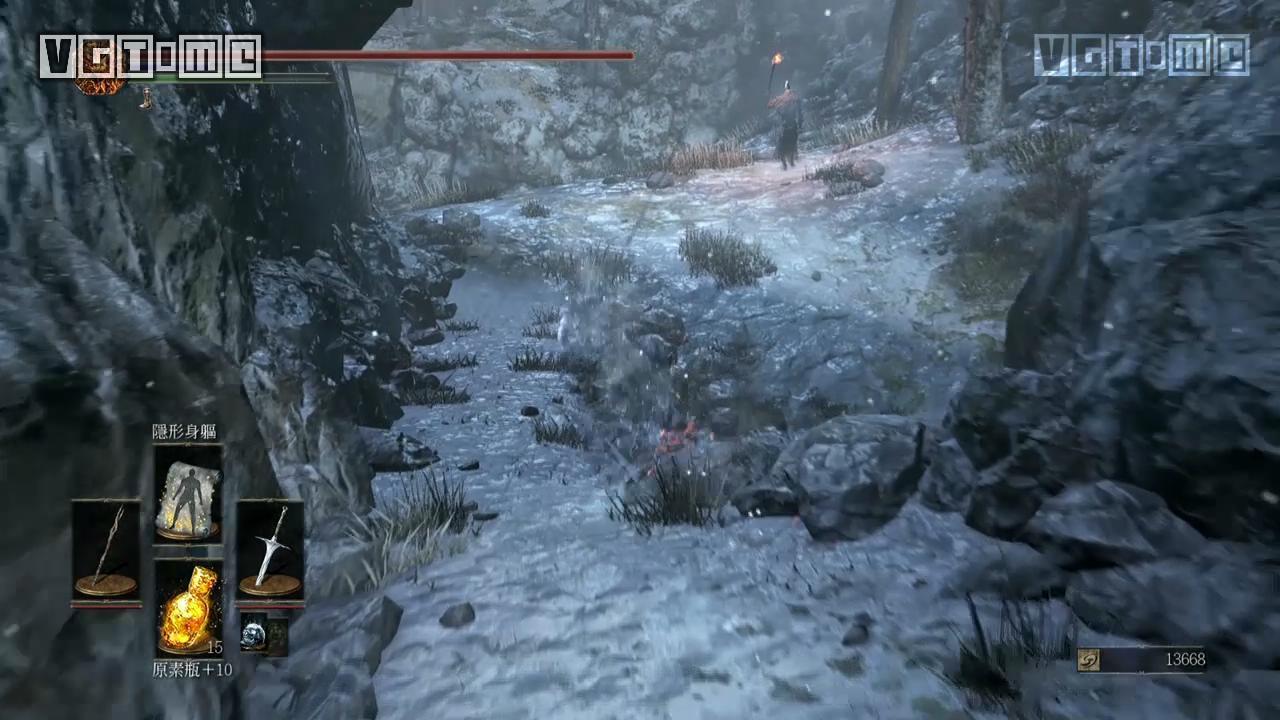 从篝火“覆雪山径”出来的地图会有大量的幽魂杂兵,被其中一个发现之后满地图的敌人都过来围殴你一个,有隐身尽量用隐身,没有的话用弓或者其他远程道具一个个勾引过来灭之。