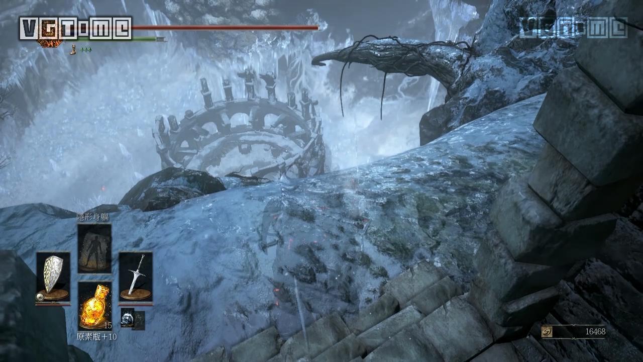 这里需要沿着树干跳下去,具体跳法可以参考文章最初的视频。此处推荐玩家带上“薄暮之国的希里斯”支线获得的白猫戒指,能够防止掉落伤害,省去几个元素瓶。