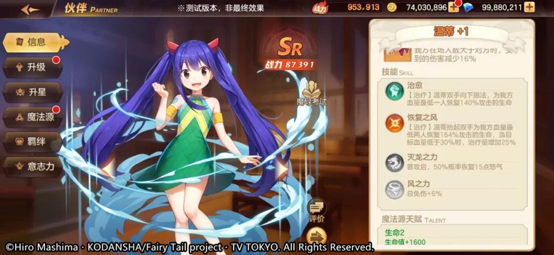 以上就是今天对于SR伙伴温蒂的全部培养建议了,不知道各位魔导士大人看完后是否有所收获呢?作为妖精的尾巴公会中最可爱的存在,相信温蒂在《妖精的尾巴 力量觉醒》游戏中,也会绽放出属于自己的光芒!