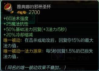 法师版本改动之前,我想没什么可以动摇圣杯在有蓝量的AP法师必出装备中的地位,当年的雅典娜邪恶圣杯可谓每个属性都是对耗蓝型AP类英雄十分重要的存在,是他们最完美的伴侣。但6.9版本对于圣杯的改动令这件装备变得偏向于辅助,使得圣杯的登场率下降颇为明显,许多人舍弃了这件当初的神器,认为这次改动让它变得一无是处。那么,真的如这些玩家所说,雅典娜的邪恶圣杯已经无法成为备受我们青睐的存在了吗?