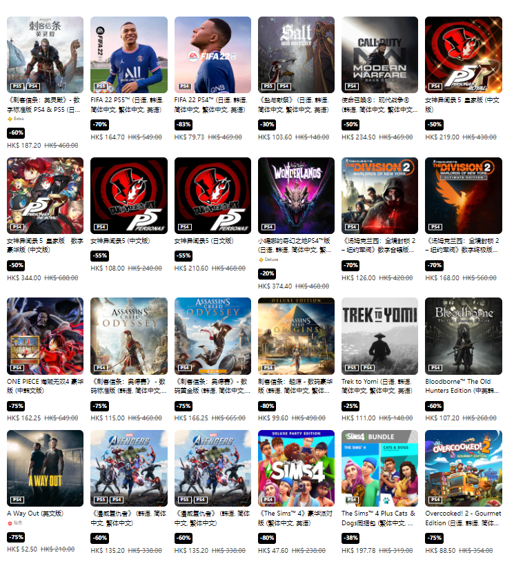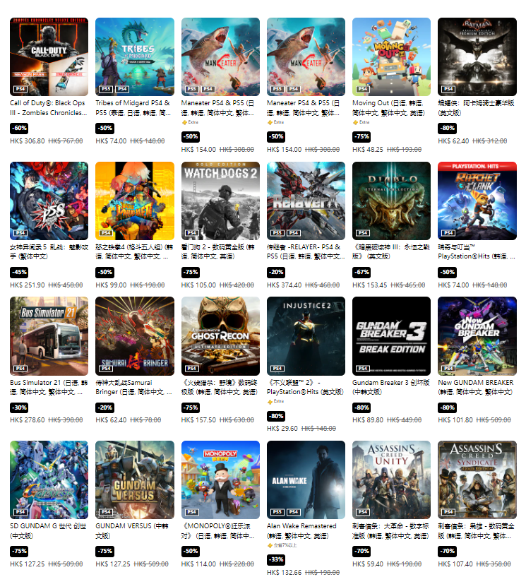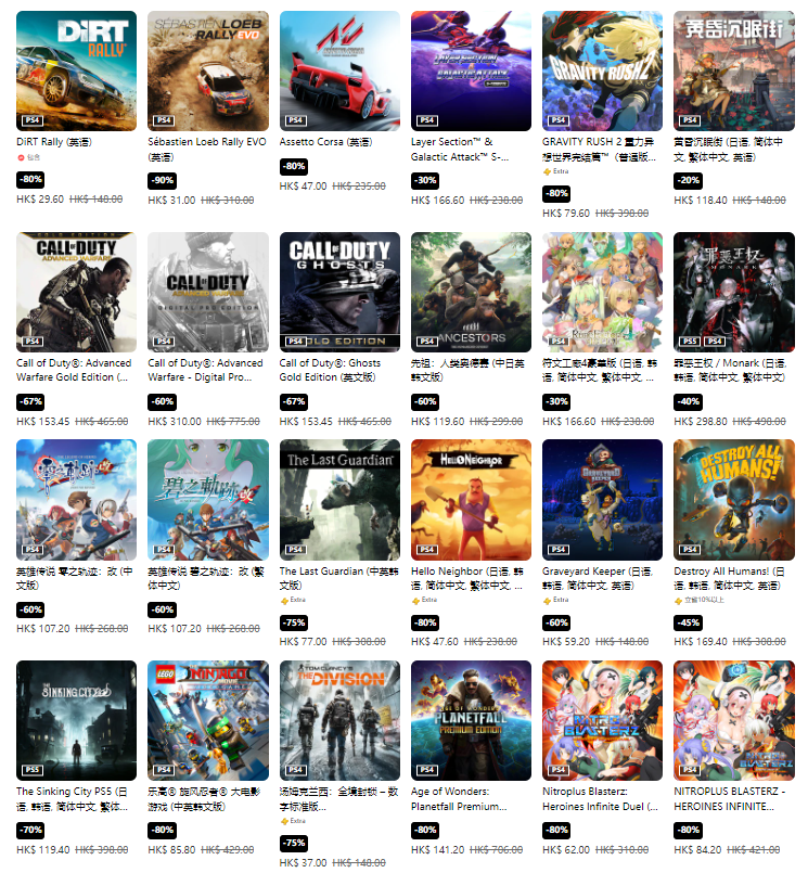 部分折扣游戏(未标注则为标准版,当前汇率1港币=0.85元人民币)