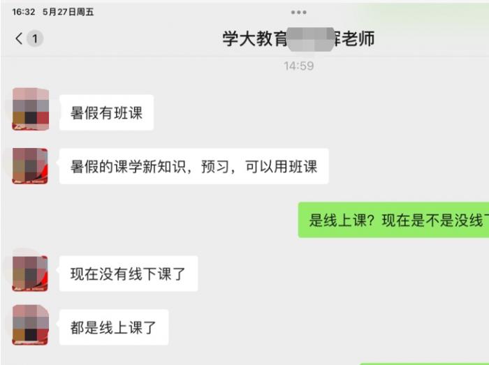 但两类主体的人员在开展业务时却没有彻底切割。记者通过学大教育官方微信咨询高中暑期课程,客服询问了所在地和联系方式后,表示安排相应老师联系。大约五分钟后,一位微信名为“学大教育李XX老师”向记者介绍了课程,但在追问下表示自己是学大培训学校的老师。